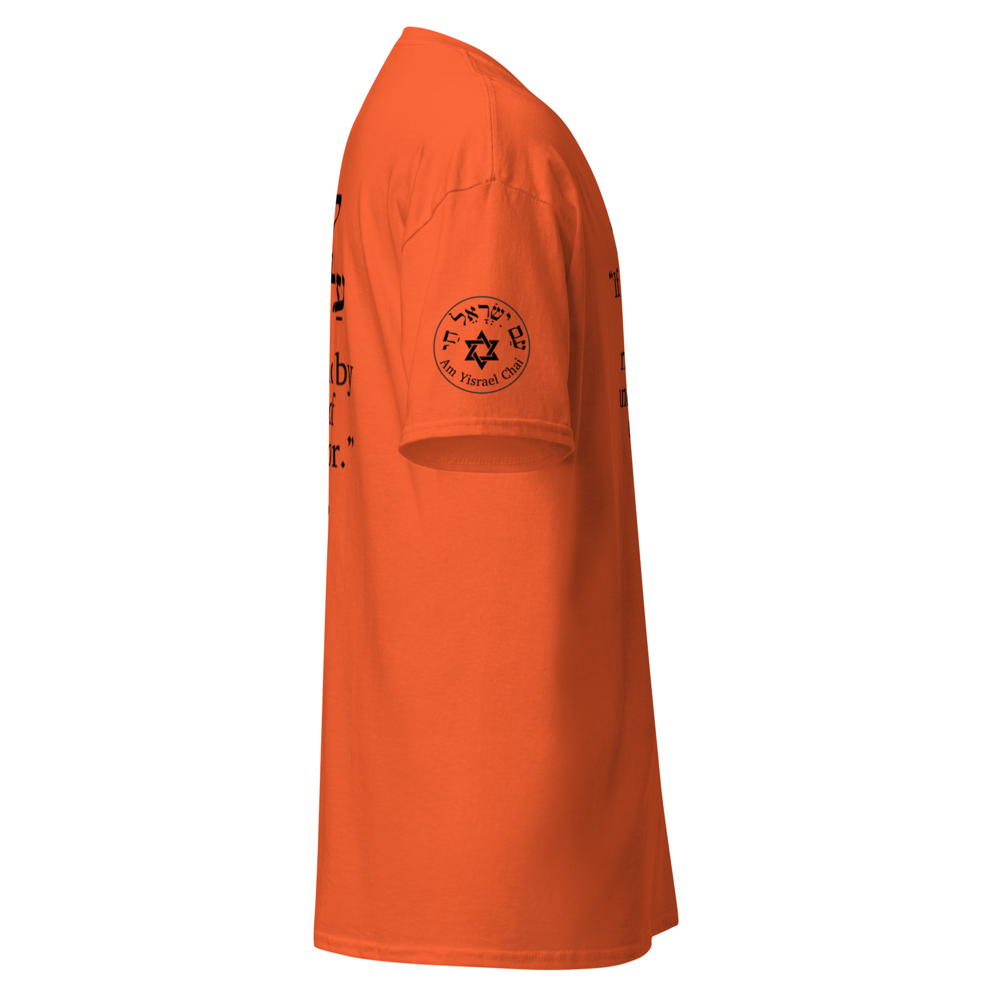 Stand for strength, courage, and faith with this bold statement tee. Featuring two powerful Jewish texts — Leviticus 19:16 on the back (“Do not stand by the blood of your neighbor”) and Sanhedrin 72a on the front (“If someone is coming to kill you, rise against him and kill him first”) — this shirt embodies the timeless principle of self-defense and moral responsibility.